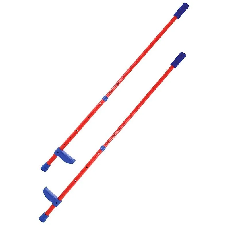 Simple fun. Step up, hold the ropes, and walk taller. Builds balance, confidence, and coordination — a classic intro to stilting.